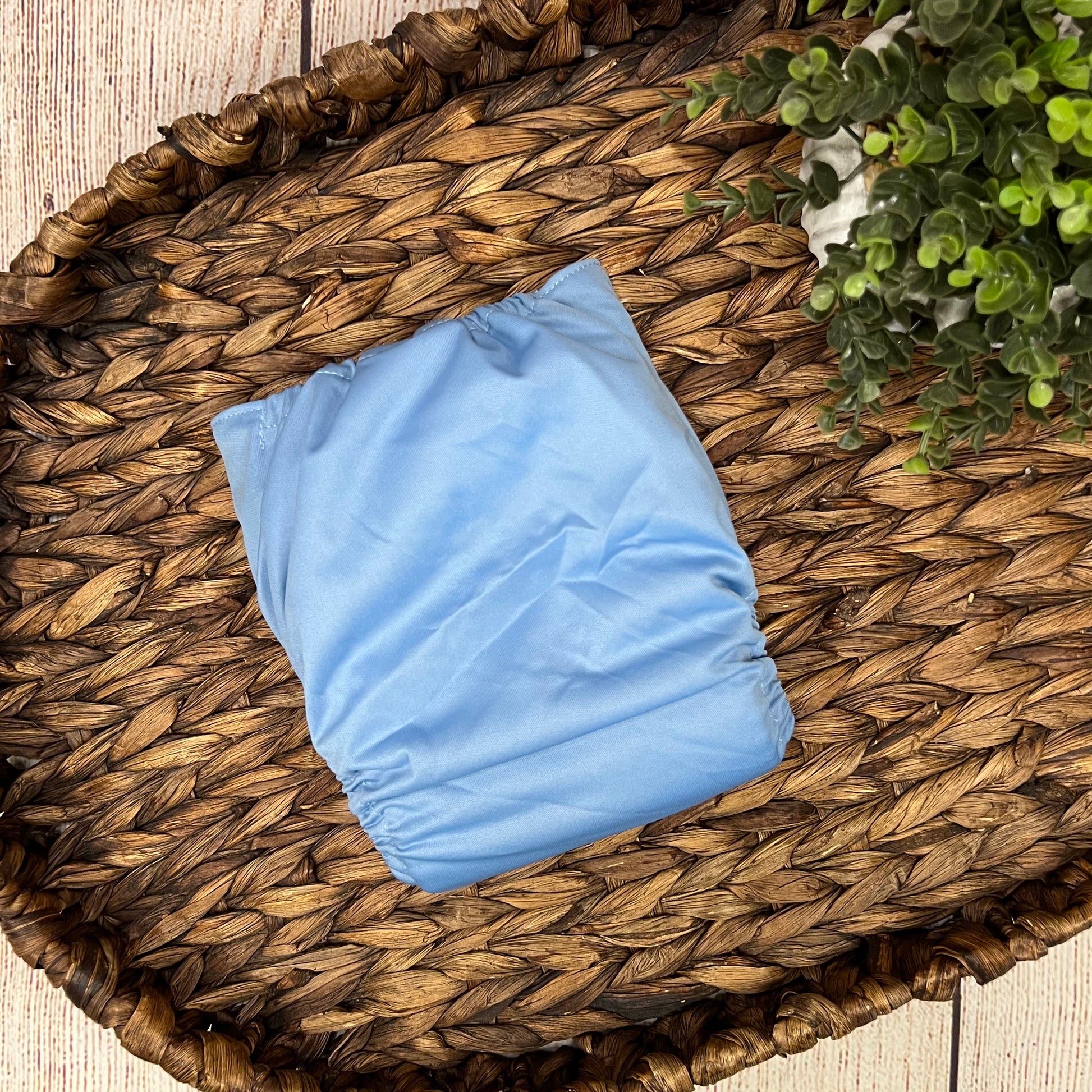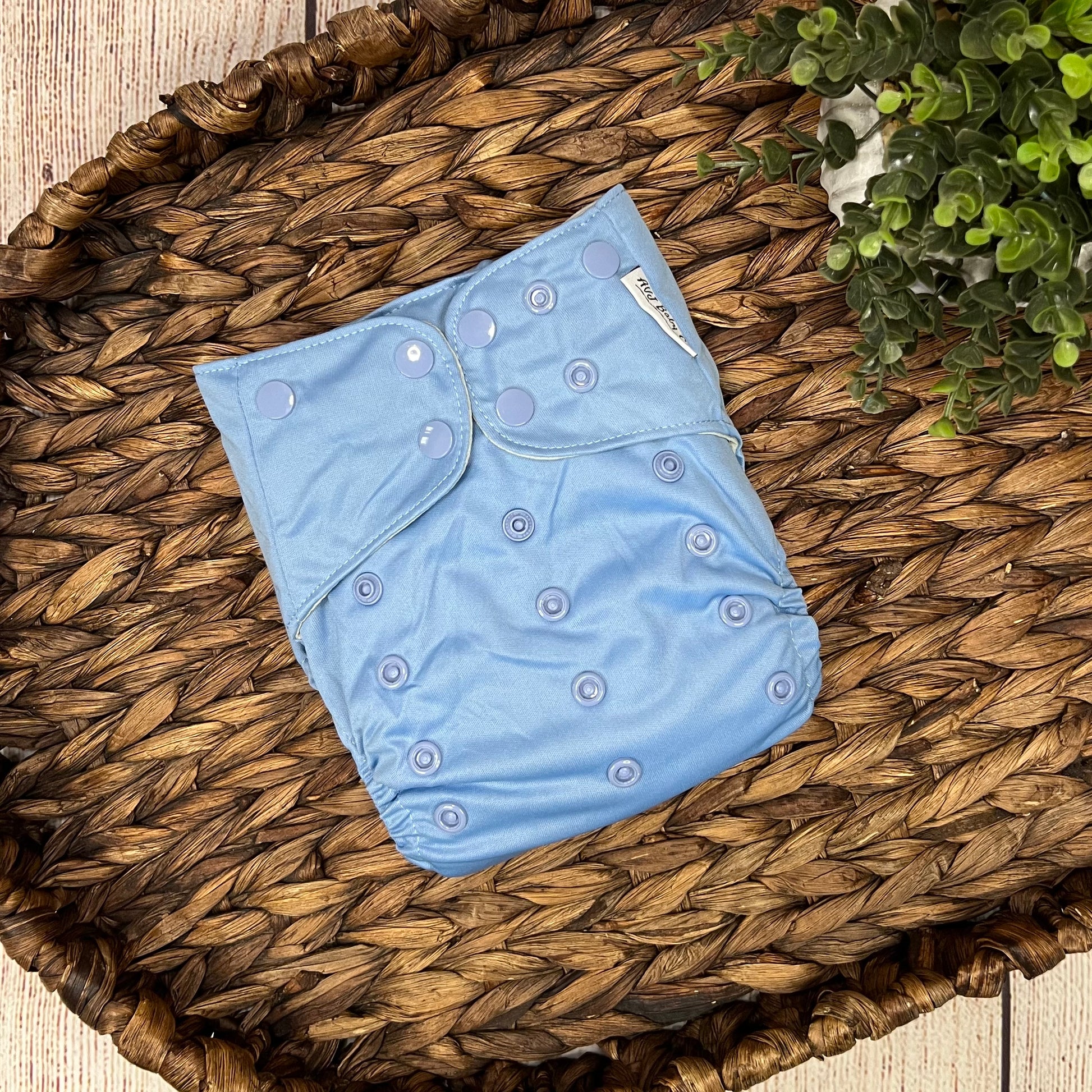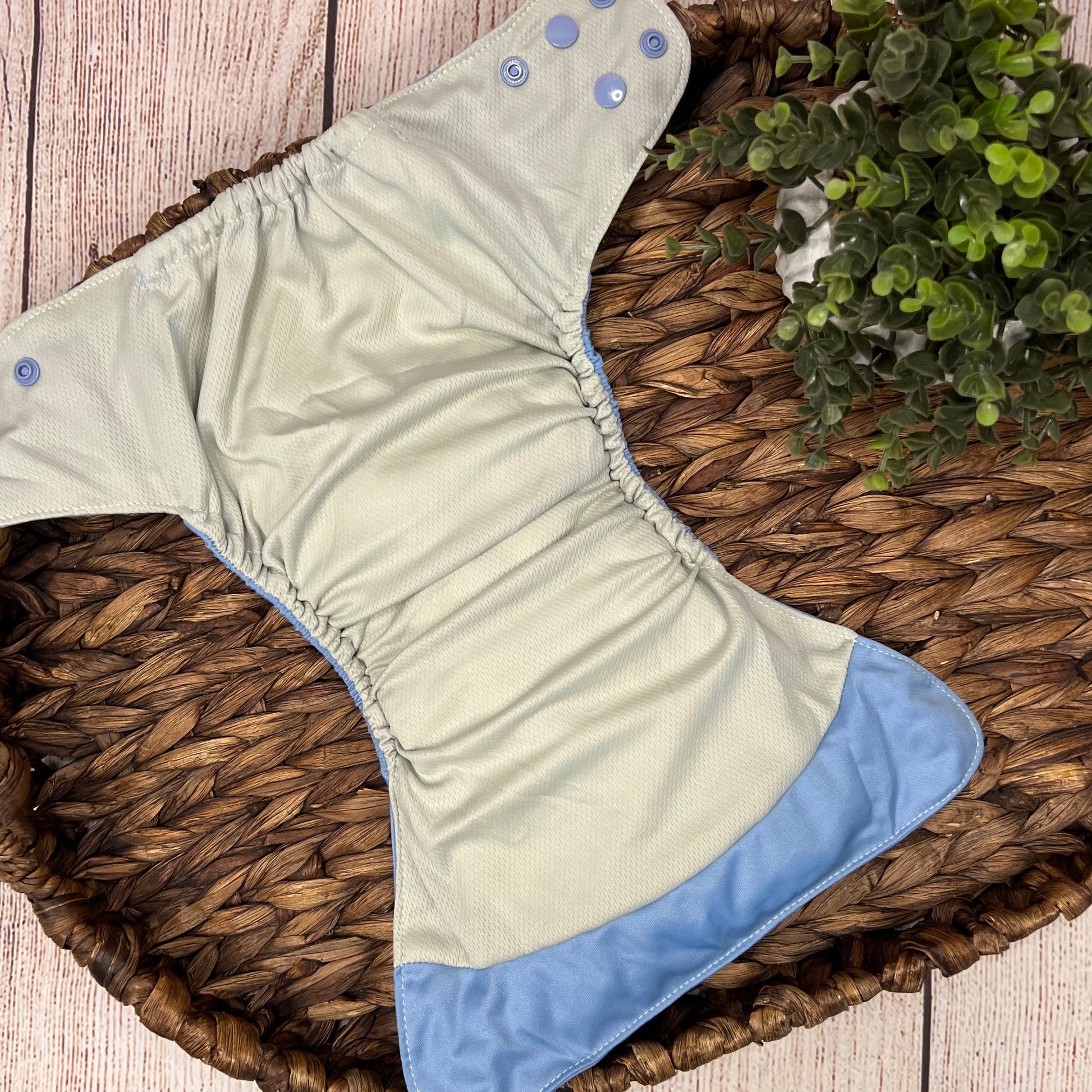 - Grey AWJ inner layer, PUL curved tummy panel to help prevent leaks, gentle back and leg elastics, and a pocket opening.