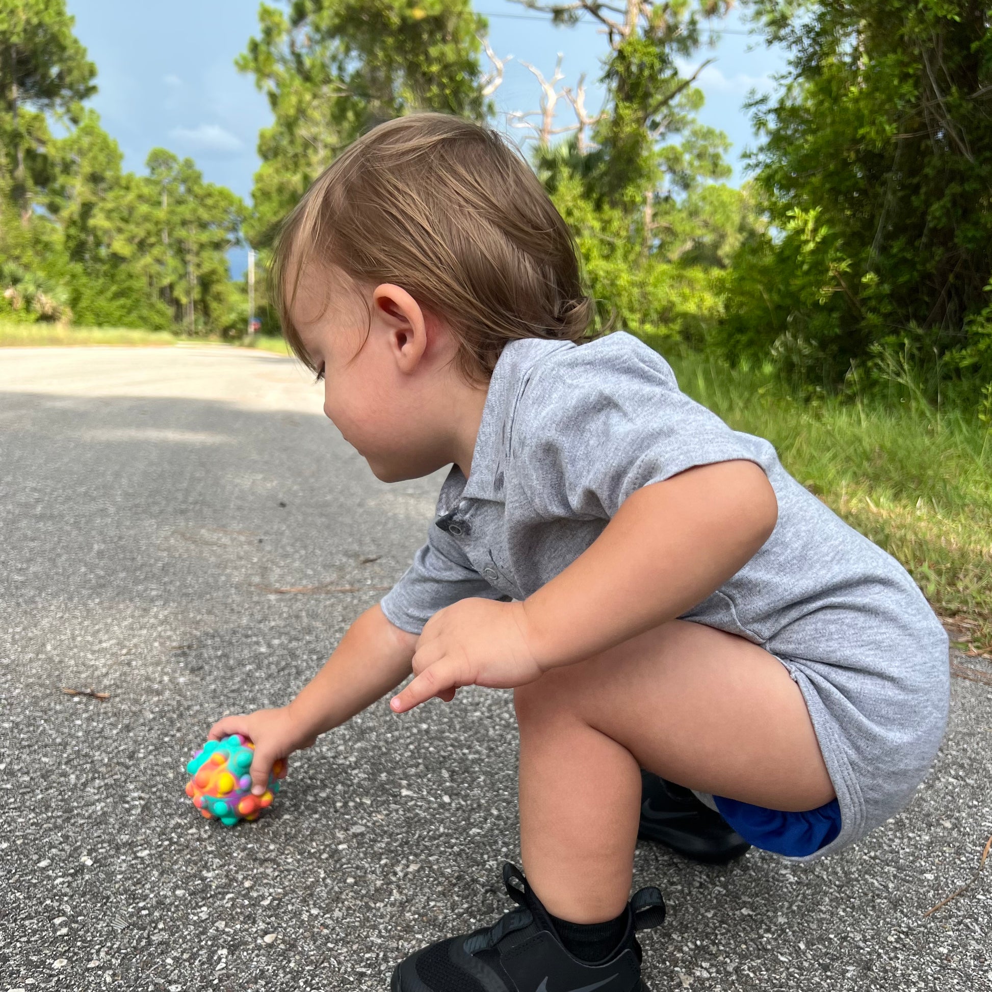 Little Jaxson is approximately 24 lbs and is wearing a size 18 month with plenty of growing room.