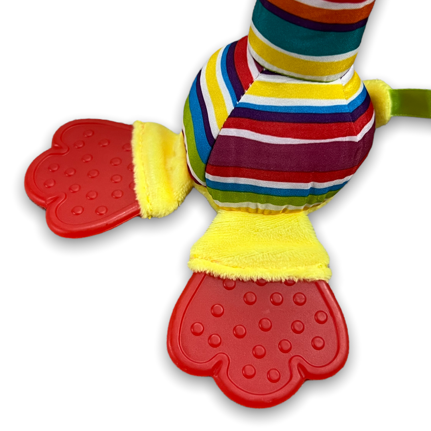 This collection of cute toys has multiple features which include a wind bell and a stimulation crinkle and squeak sound. There are also teethers to help engage with the curiosity of chewing while massaging delicate baby gums, all while being the perfect size for a suitable hand grasp!