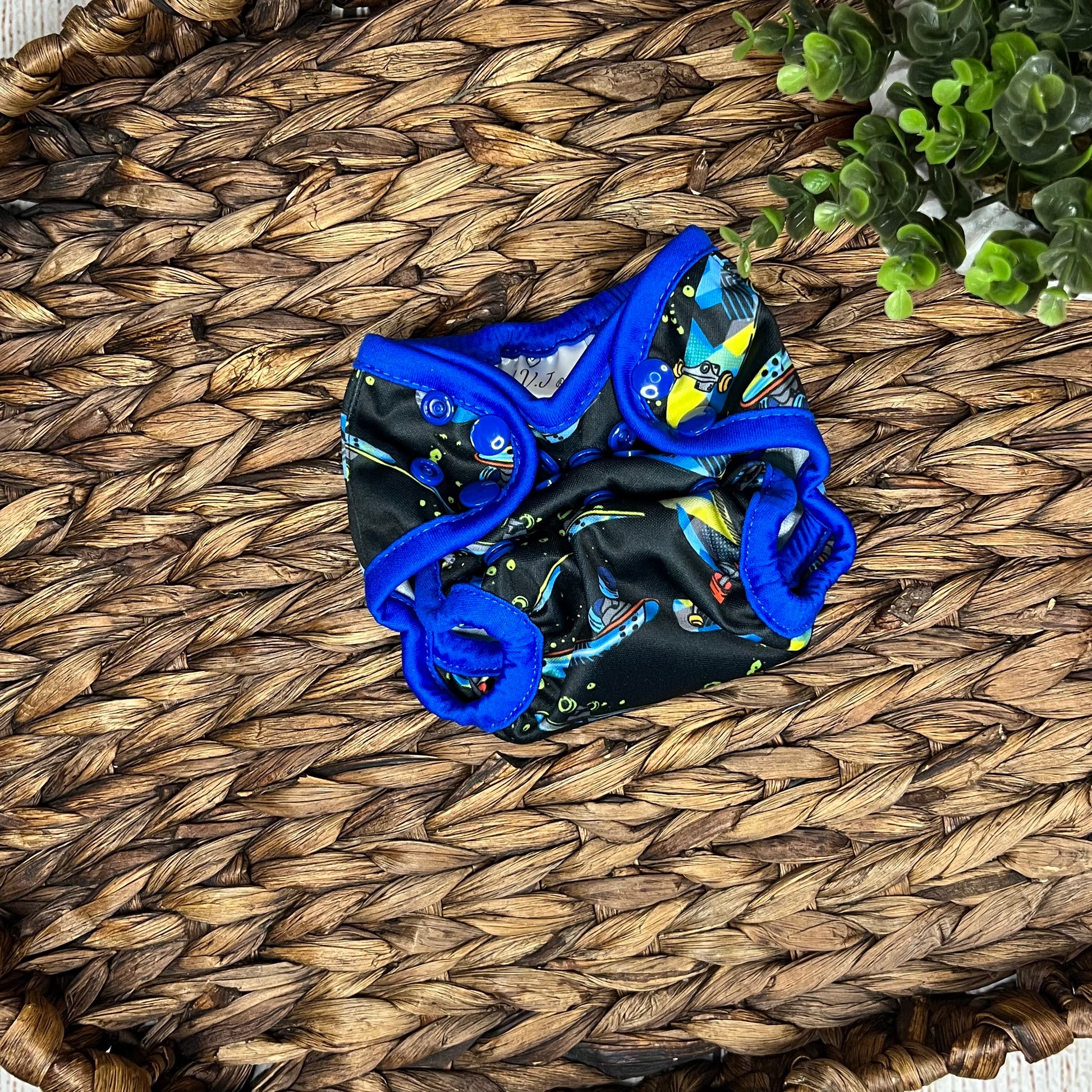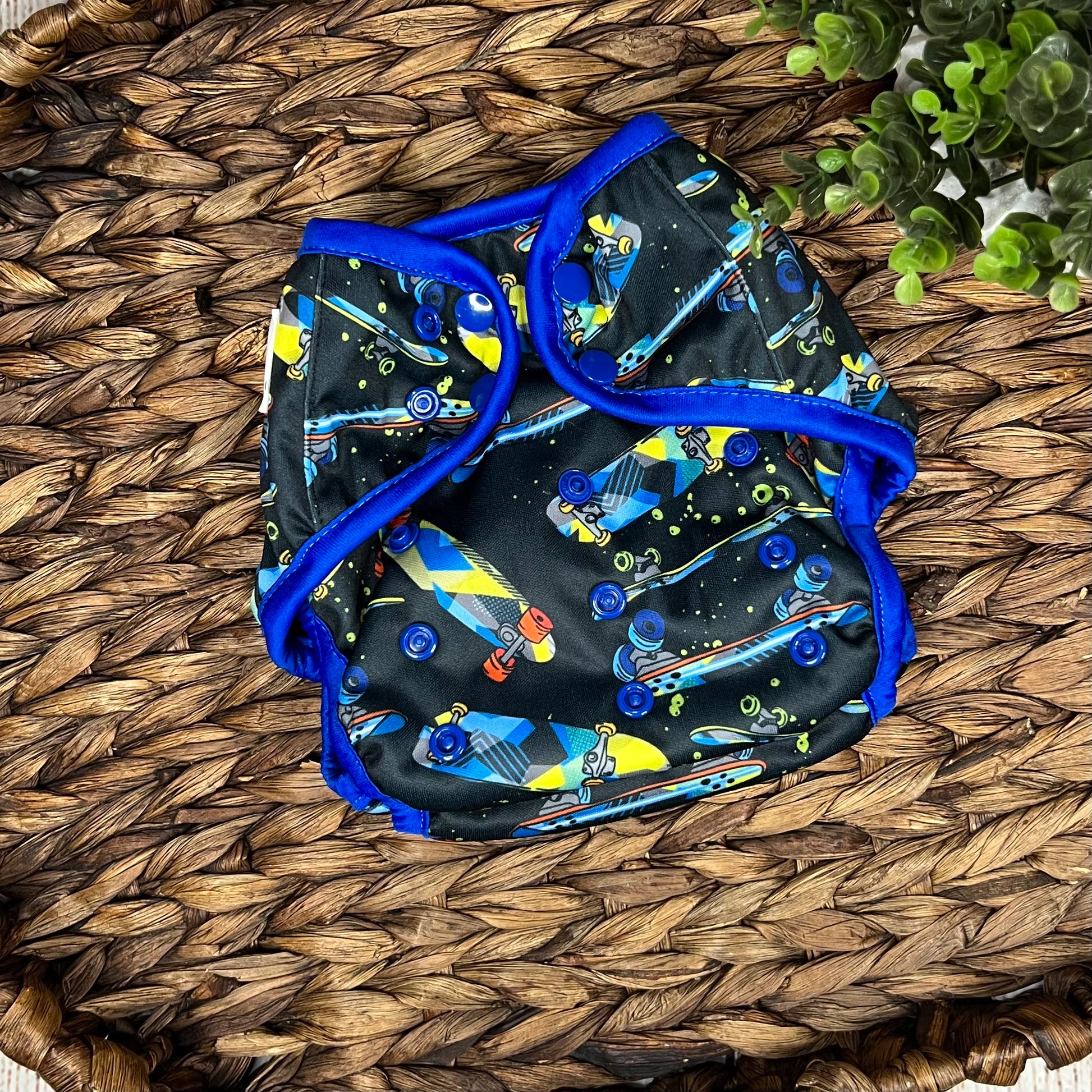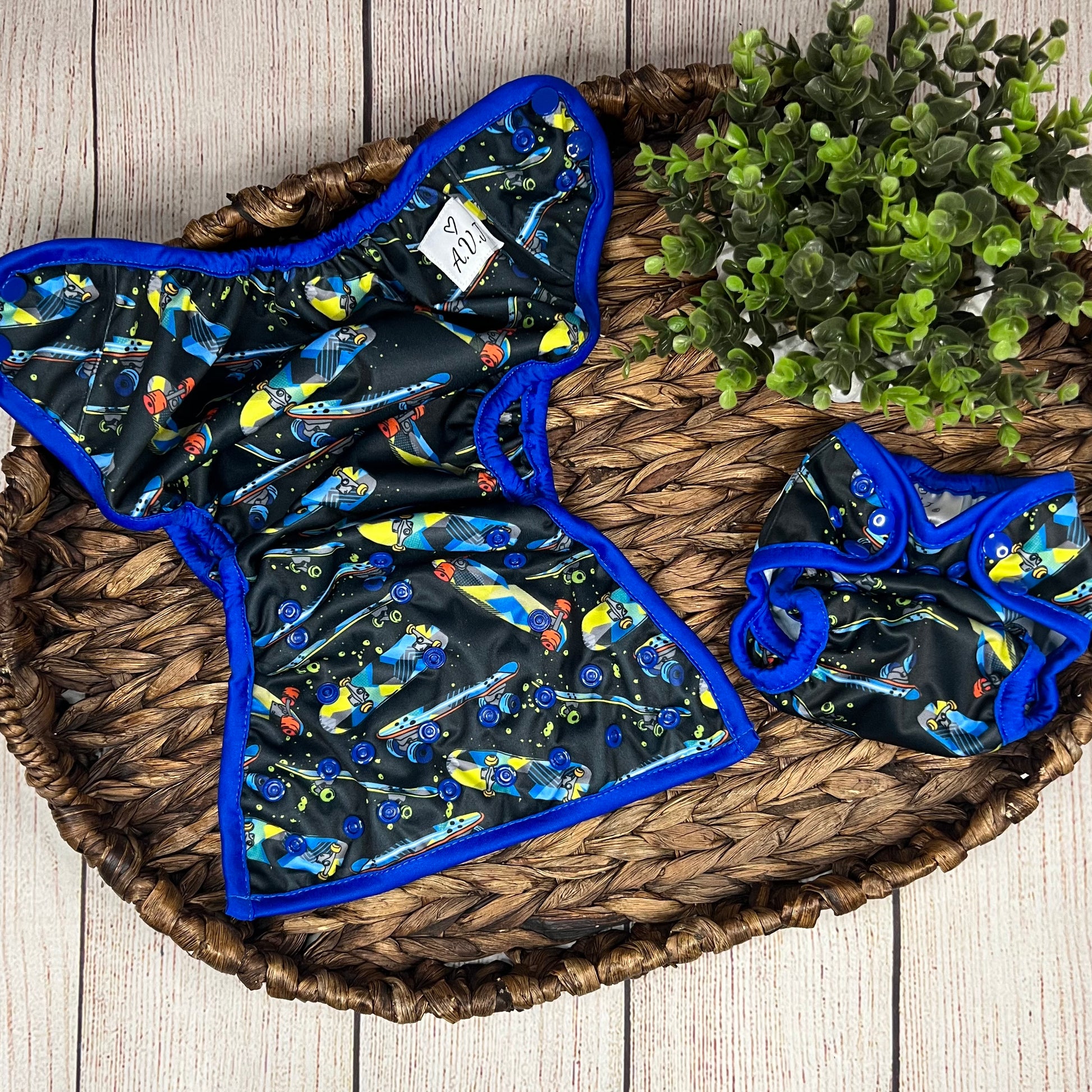 Our diaper covers are available in One Size and Newborn. Both sizes are identical as far as features with the exception of a snap down option on the newborn size for the umbilical cord.