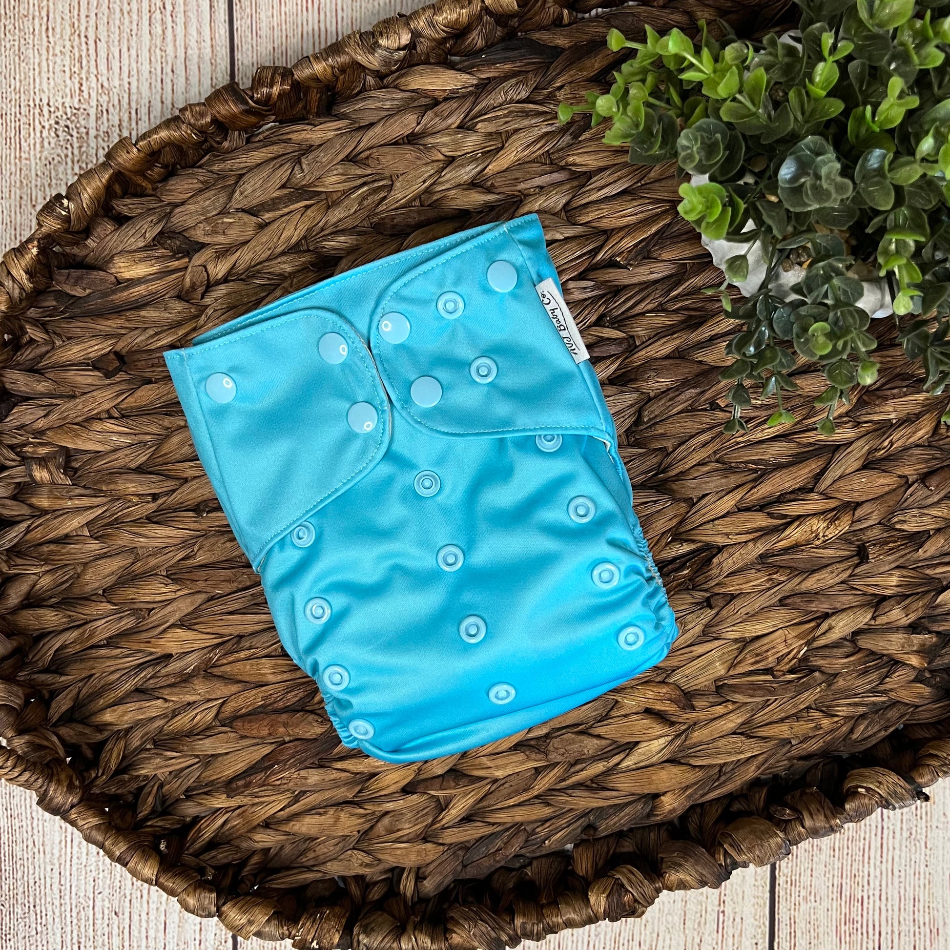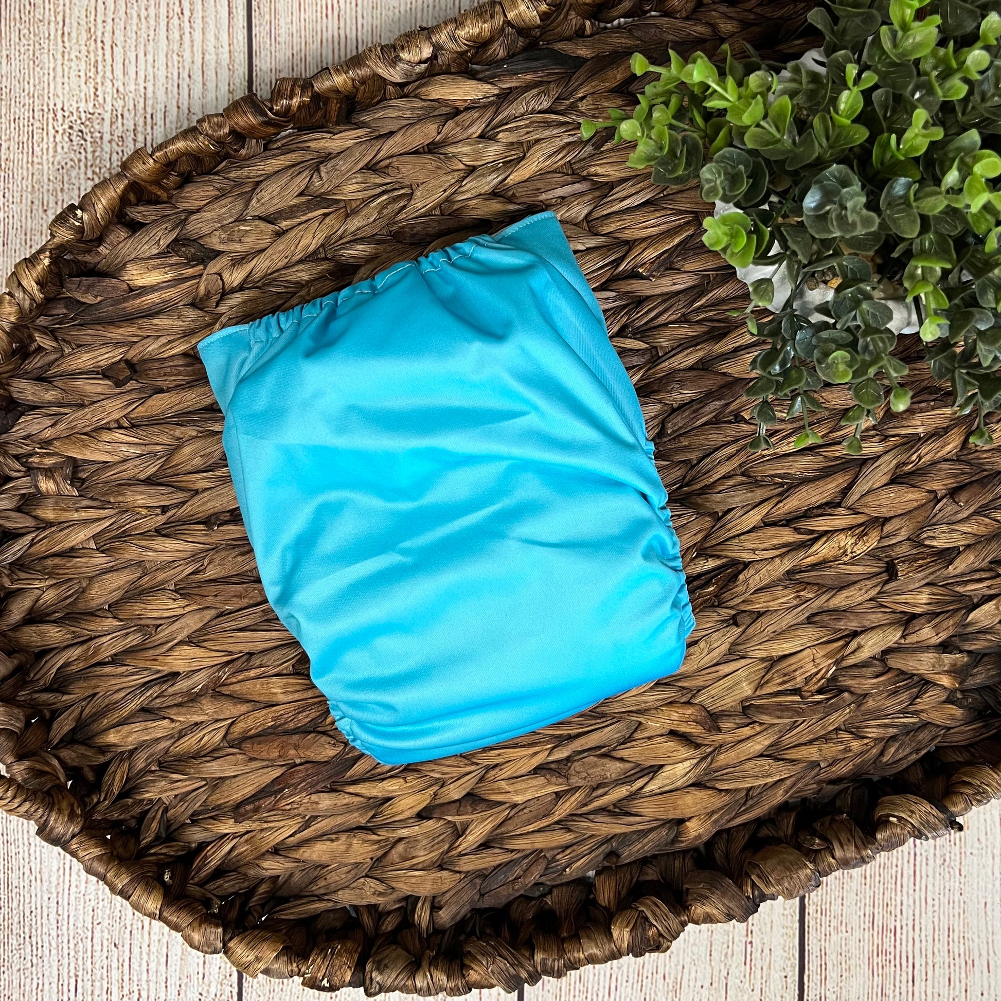 - Grey AWJ inner layer, PUL curved tummy panel to help prevent leaks, gentle back and leg elastics, and a pocket opening.