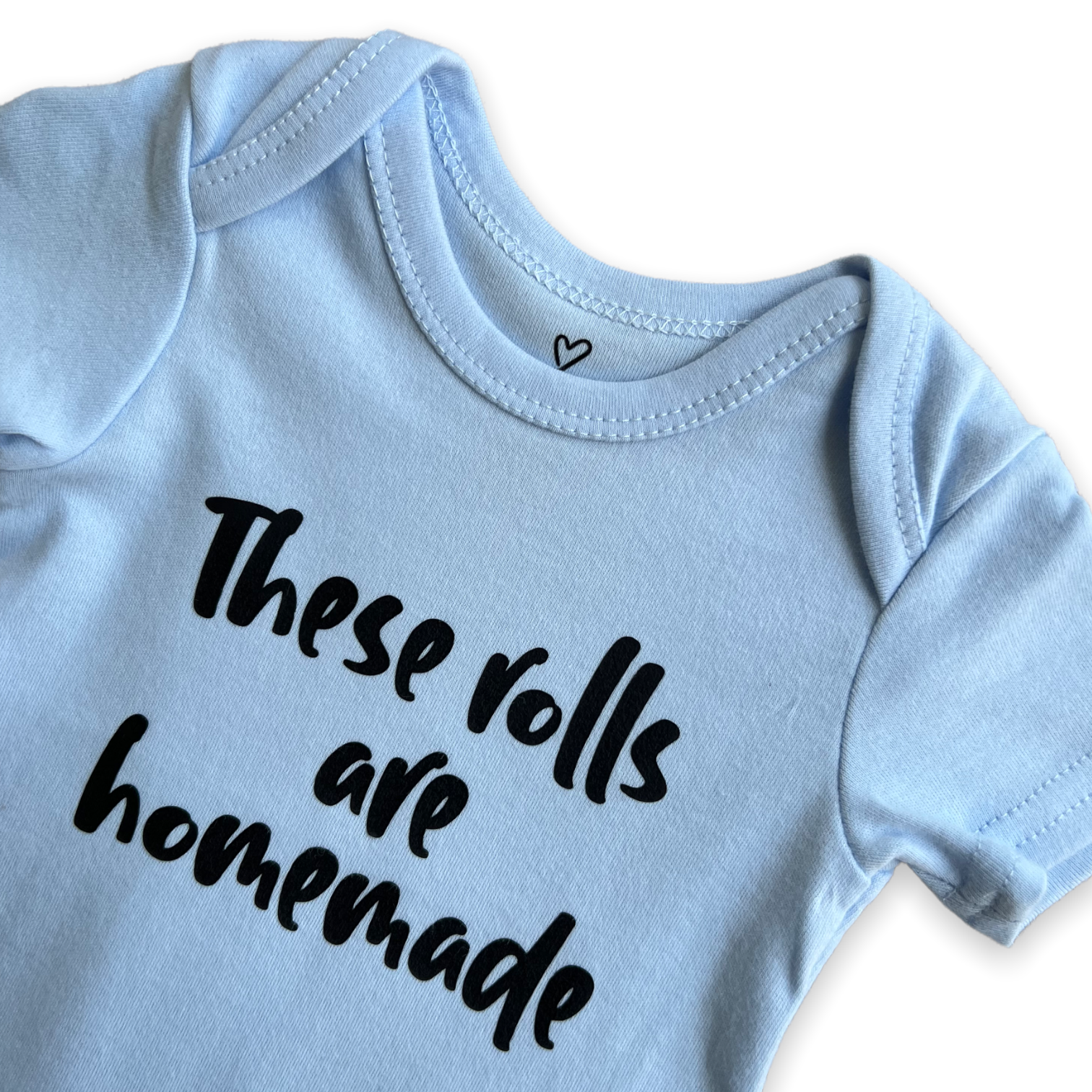 Our super cute handmade graphic baby clothes are one of a kind! They are made uniquely right here in my home as I am a WAHM-owned business. These bodysuits are very true to size and are very soft and stretchy!