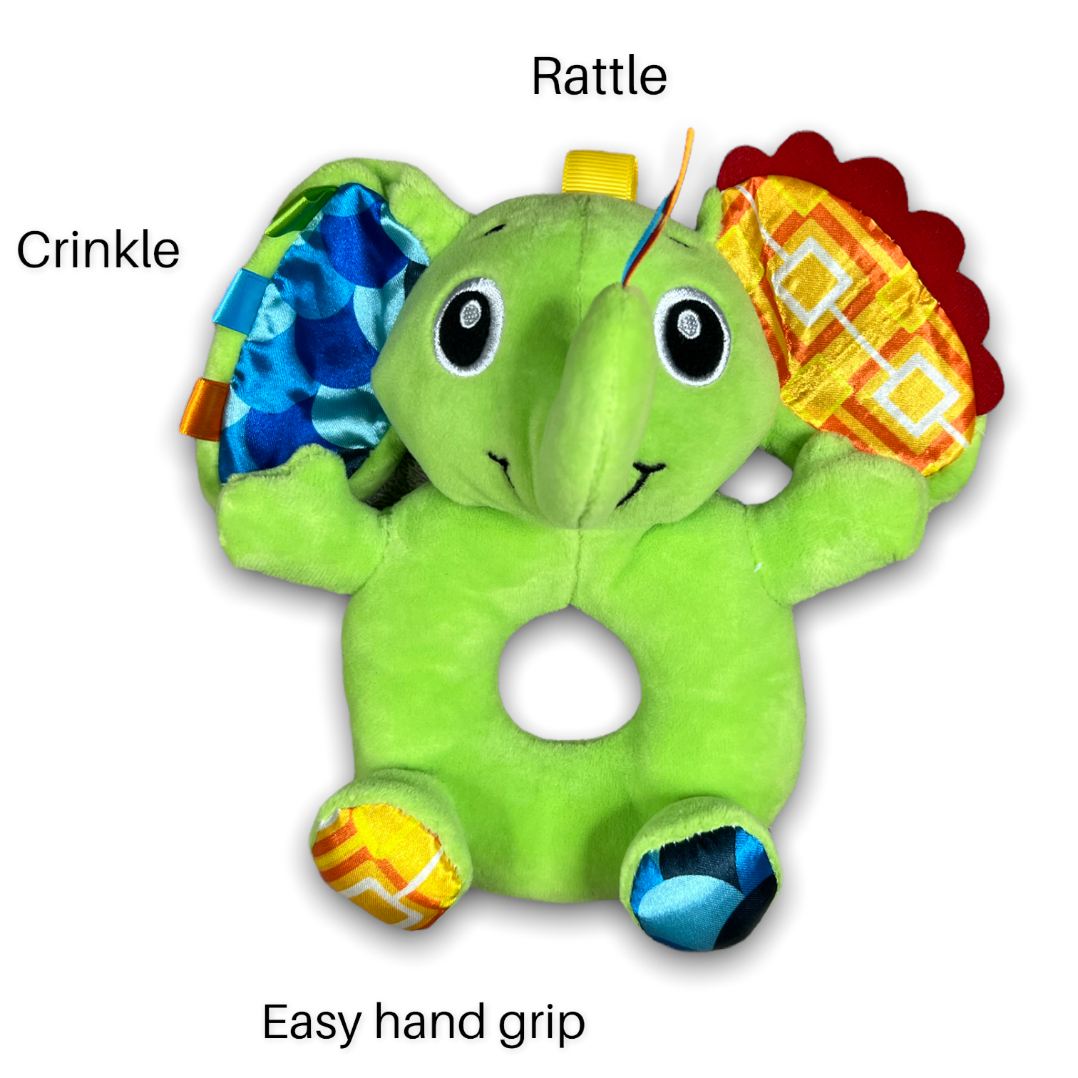 Our "My First Rattle" collection is your baby's perfect introductory toy! With stimulating sounds, such as a soft rattle along with an intriguing crinkle that's sure to engage curiosity! This collection is a great size for a suitable hand grasp for your little one!