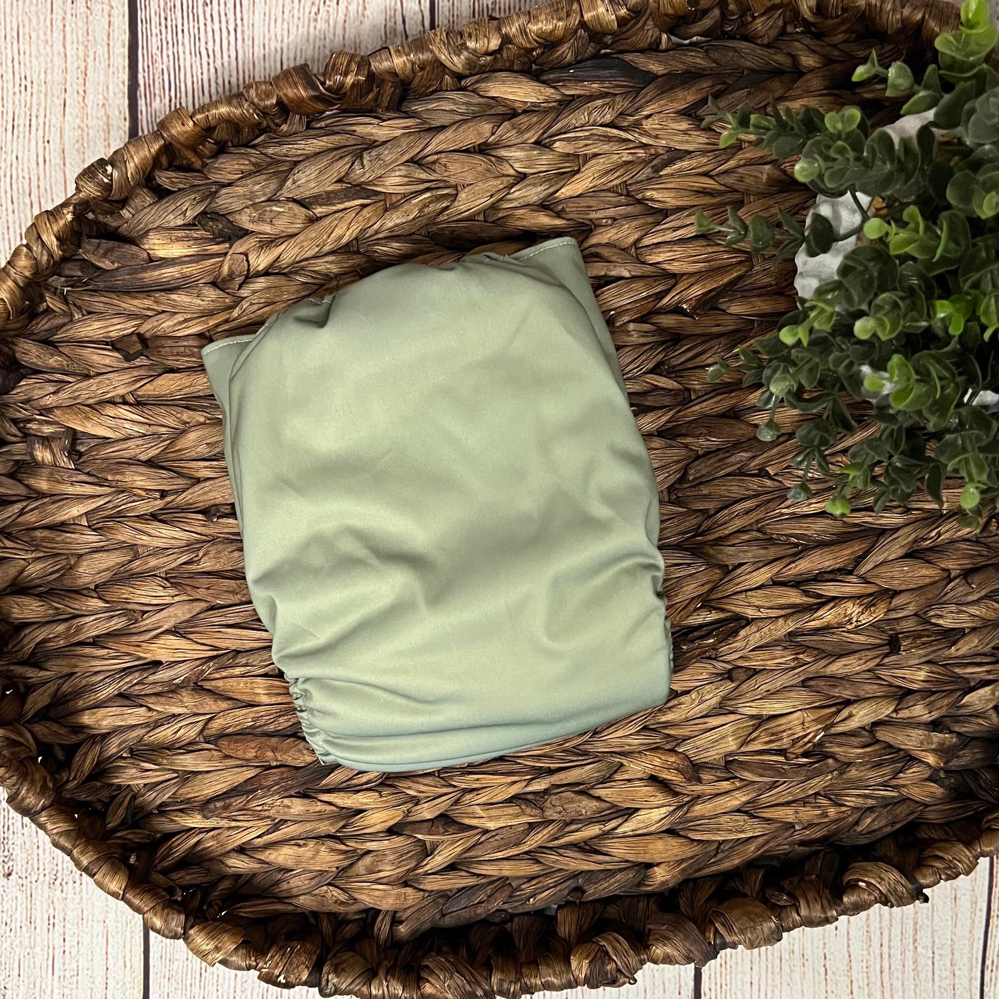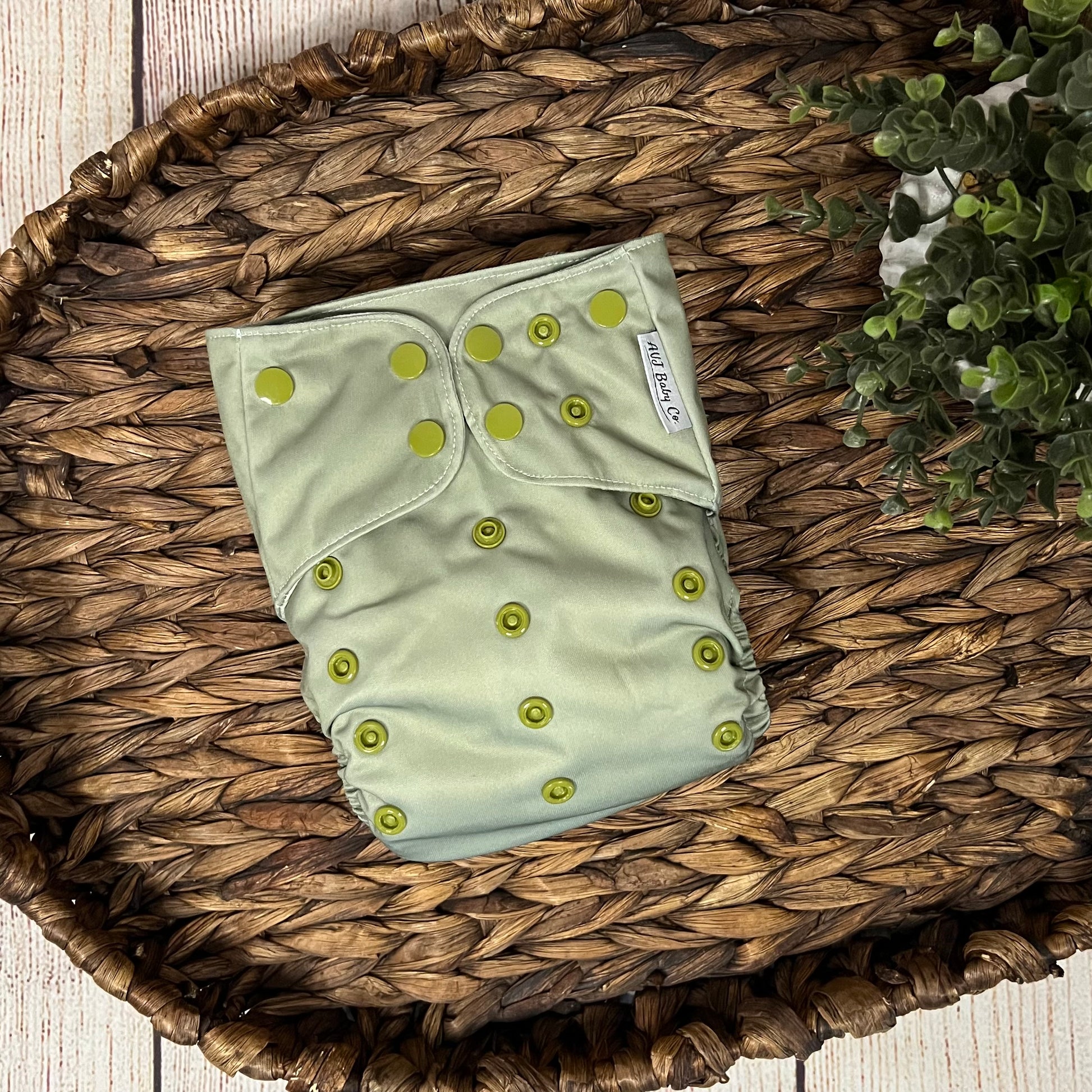- Grey AWJ inner layer, PUL curved tummy panel to help prevent leaks, gentle back and leg elastics, and a pocket opening.
